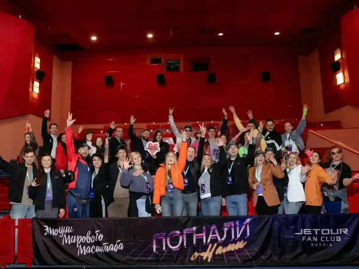 После подготовки колонна автомобилей JETOUR отправилась к следующей точке маршрута — кинотеатру, который стал символическим порталом в прошлое. Там гостей ждал совместный просмотр фильма «Попутчики», в котором одну из ролей исполняет кроссовер JETOUR T2. Совместный кинопросмотр создал атмосферу настоящего «семейного сеанса», где участники делились впечатлениями, обсуждали фильм и вспоминали любимые киноленты эпохи VHS.